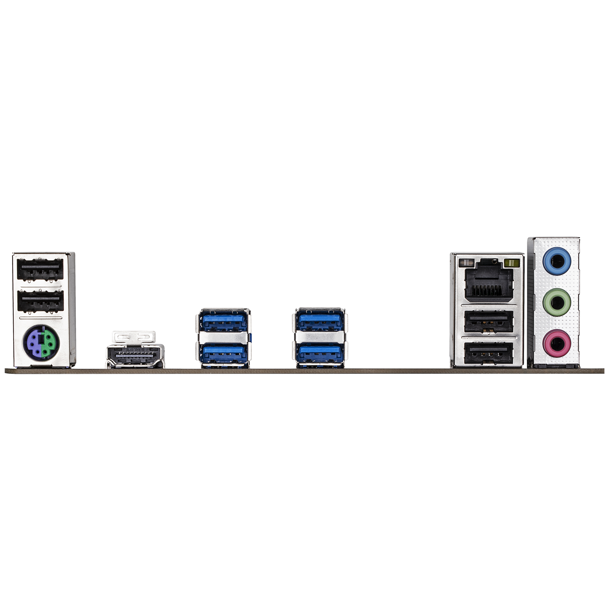 | Back Panel I/O Ports | 1 x PS/2 keyboard/mouse port 1 x HDMI port 4 x USB 3.1 Gen 1 ports 4 x USB 2.0/1.1 ports 1 x RJ-45 port 3 x audio jacks |