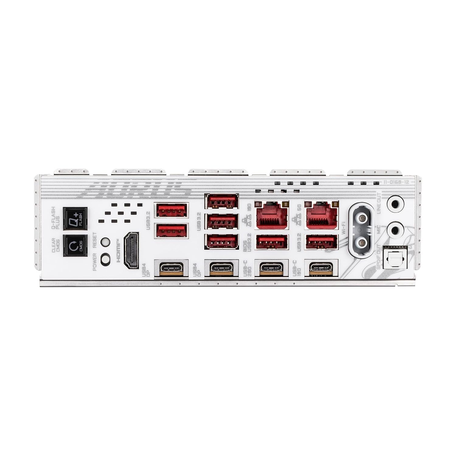 | Back Panel I/O Ports | 1 x HDMI port 1 x reset button 1 x power button 1 x Clear CMOS button 1 x Q-Flash Plus button 5 x USB 3.2 Gen 2 Type-A ports (red) 2 x USB Type-C ports, with USB 3.2 Gen 2 support 2 x USB4 USB Type-C ports (DisplayPort (Note)) 1 x RJ-45 port 3 x USB 3.2 Gen 1 ports 2 x antenna connectors (2T2R) 2 x audio jacks 1 x optical S/PDIF Out connector |