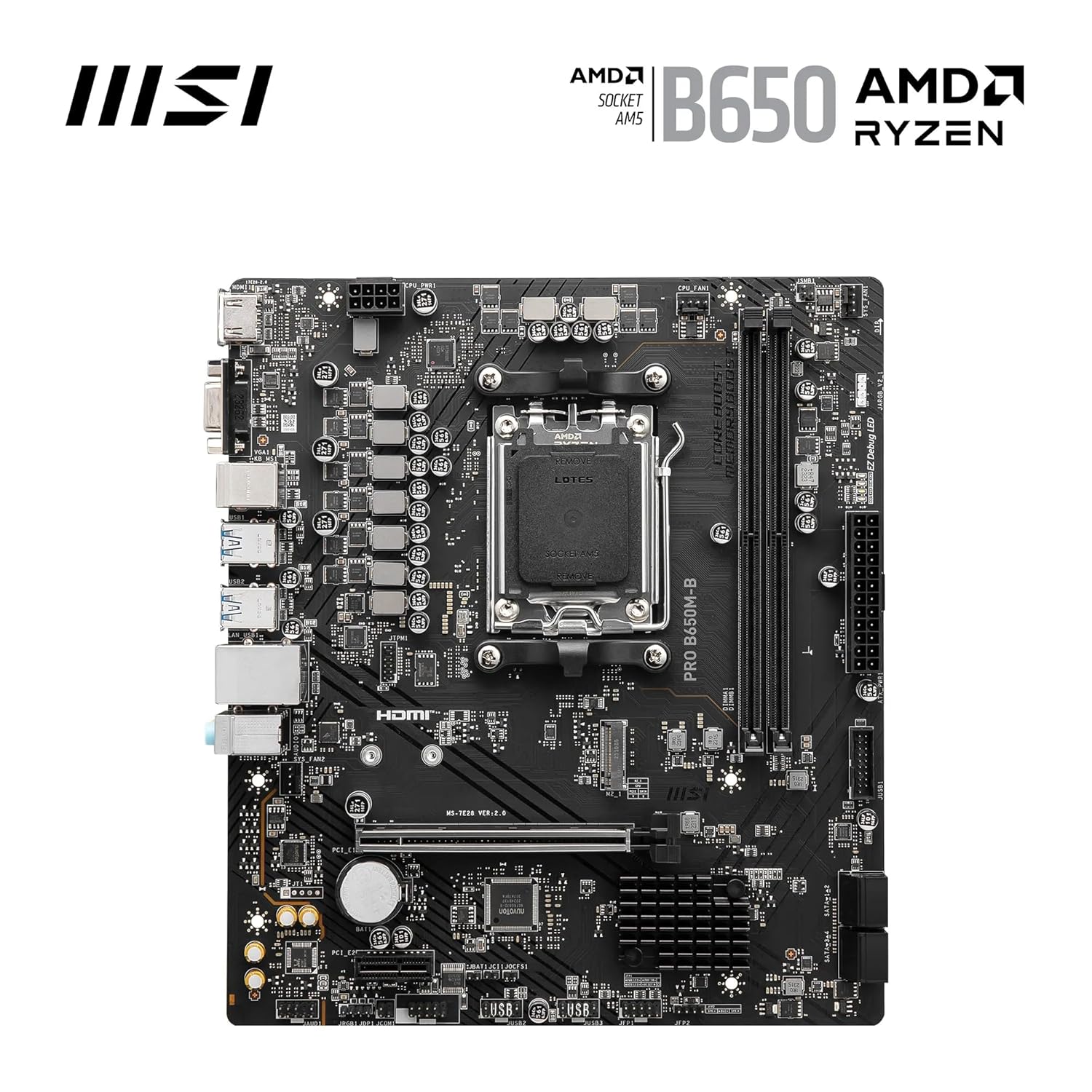 MSI PRO B650M-B Motherboard, mATX — Supports AMD Ryzen™ 9000 / 8000 / 7000 Series Desktop Processors, Socket AM5 — DDR5